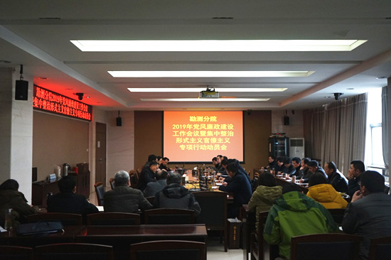 3月8日,勘測(cè)分院召開(kāi)2019年黨風(fēng)廉政建設(shè)工作會(huì)議暨集中整治形式主義官僚主義專項(xiàng)行動(dòng)動(dòng)員會(huì)。院黨委副書記、紀(jì)檢書記戴永法對(duì)院2018年紀(jì)檢監(jiān)察工作進(jìn)行總結(jié),安排部署2019年紀(jì)檢監(jiān)察工作任務(wù),并宣讀了《院黨委關(guān)于開(kāi)展“嚴(yán)規(guī)矩、強(qiáng)監(jiān)督、轉(zhuǎn)作風(fēng)”集中整治形式主義官僚主義專項(xiàng)行動(dòng)實(shí)施方案》,院黨委書記張峰出席會(huì)議并講話。