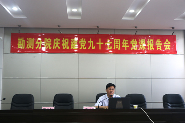為慶祝建黨九十七周年,7月3日下午,勘測(cè)分院黨總支邀請(qǐng)蚌埠市委黨校許如寶教授為勘測(cè)分院黨員干部上黨課,報(bào)告會(huì)由勘測(cè)分院副院長(zhǎng)郭興軒主持,分院領(lǐng)導(dǎo)、中層干部及全體黨員近80人參加黨課學(xué)習(xí)。