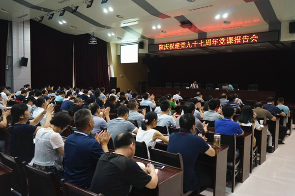 為紀(jì)念建黨97周年,6月28日上午,院黨委邀請安徽行政學(xué)院郝敬勝教授為黨員干部集中上黨課。報告會由院黨委書記張峰主持,院內(nèi)業(yè)中層以上干部、全體黨員及離退休支部委員參加集中黨課學(xué)習(xí)。