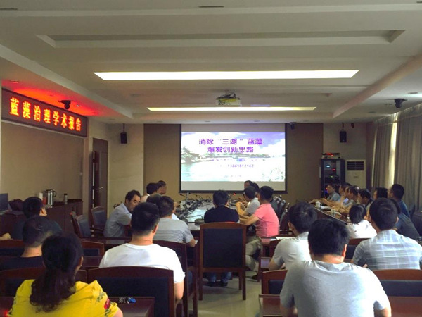 朱喜高工就“三湖”藍(lán)藻爆發(fā)原因、治理現(xiàn)狀成果進(jìn)行了闡述,提出要制定消除藍(lán)藻治理規(guī)劃、恢復(fù)蘆葦濕地、提高污水處理排放標(biāo)準(zhǔn)等系統(tǒng)治理新思路。馬建華副總經(jīng)理就深井除藻等新技術(shù)的技術(shù)思路、除藻效果和應(yīng)用前景進(jìn)行了系統(tǒng)闡述。桂旺勝博士就利用物聯(lián)網(wǎng)、大數(shù)據(jù)分析等技術(shù),建設(shè)針對水質(zhì)監(jiān)控、藍(lán)藻治理、綜合管理物聯(lián)網(wǎng)監(jiān)控和管理平臺,通過信息化手段科學(xué)治理藍(lán)藻進(jìn)行了詳細(xì)闡述。