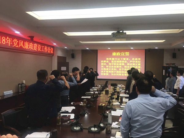 會上,張峰書記代表院黨委與院領導班子成員、勘測分院黨總支、部門負責人分別簽訂了黨風廉政建設責任書,并帶領全體參會人員進行了廉政宣誓。