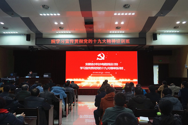 此次培訓(xùn)班采取個(gè)人自學(xué)與集中輔導(dǎo)、研討相結(jié)合的形式,用了四天的時(shí)間對學(xué)習(xí)貫徹黨的十九大精神進(jìn)行系統(tǒng)輔導(dǎo)。邀請安大哲學(xué)系教授裴德海來院作輔導(dǎo)報(bào)告,黨委副書記、副院長、紀(jì)委書記戴永法、副院長朱青、總規(guī)劃師徐迎春,結(jié)合工作實(shí)際和個(gè)人學(xué)習(xí)體會(huì)帶頭上臺(tái)講課,他們分別作了題為《勇立新時(shí)代潮頭為實(shí)現(xiàn)社會(huì)主義現(xiàn)代化強(qiáng)國而奮斗》、《以習(xí)近平新時(shí)代中國特色社會(huì)主義思想為統(tǒng)領(lǐng) 全面加強(qiáng)黨的領(lǐng)導(dǎo)和黨風(fēng)廉政建設(shè)》、《不忘初心,砥礪前行——引江濟(jì)淮臺(tái)前幕后故事》和《學(xué)習(xí)十九大精神 探索水利規(guī)劃設(shè)計(jì)新思路》的專題輔導(dǎo),帶領(lǐng)黨員認(rèn)真研讀黨的十九大報(bào)告和黨章,學(xué)習(xí)習(xí)近平總書記系列重要講話精神,引導(dǎo)廣大干部深刻領(lǐng)會(huì)黨的十九大主題,深刻領(lǐng)會(huì)把握黨的十九大關(guān)于水利工作的新要求。