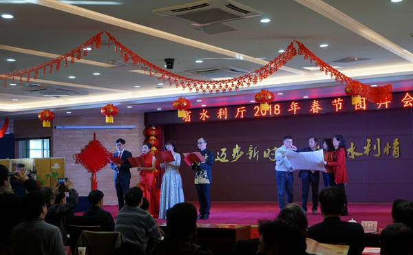 2月12日下午,省水利廳2018年春節(jié)團(tuán)拜會(huì)在合肥隆重舉行,廳領(lǐng)導(dǎo)與全省水利系統(tǒng)干部職工200余人歡聚一堂,我院選送的配樂(lè)詩(shī)朗誦《夢(mèng)想·起航》、雙簧《賀新春》受到廣泛好評(píng)。