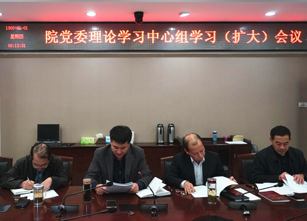 程觀富院長和戴永法副院長分別傳達了《黨的十九大精神提綱》、《省委書記李錦斌在省委常委擴大會議中的講話》,會議還集中學習了《省委常委擴大會議精神》、《水利部召開干部大會傳達貫徹黨的十九大精神》等,并按照《院黨委中心組2017年度理論學習計劃》,開展第九專題和第十專題學習。