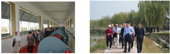 隨后,離退休職工乘車赴水生態(tài)園參觀。車攬水生態(tài)園,徒步親荷棧道,別有一番情景。離退休職工饒有興趣地考察蚌埠閘新節(jié)制閘導(dǎo)流堤、水電站、船閘等水利設(shè)施,并在淮望角留影紀(jì)念。