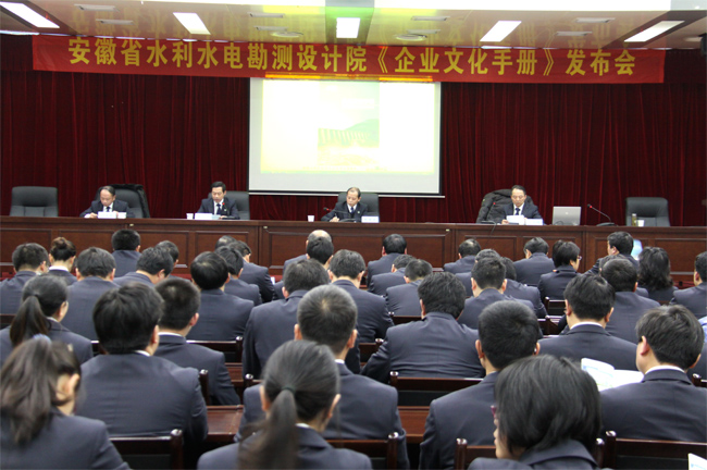 發(fā)布會(huì)上,院領(lǐng)導(dǎo)用翔實(shí)的文字資料和圖片,宣講了院企業(yè)宗旨、企業(yè)精神、價(jià)值理念、管理理念、經(jīng)營(yíng)方針和質(zhì)量方針等企業(yè)理念,激勵(lì)員工愛崗敬業(yè),增強(qiáng)企業(yè)凝聚力,提升核心競(jìng)爭(zhēng)力。要求設(shè)計(jì)院?jiǎn)T工進(jìn)一步服務(wù)安徽水利發(fā)展大局,精心培育企業(yè)文化,治水興業(yè),同創(chuàng)共享,為安徽水利事業(yè)再創(chuàng)佳績(jī),再立新功。