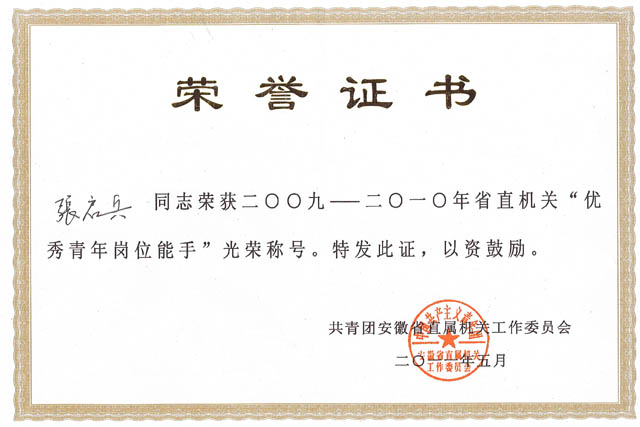 我院勘測(cè)分院勘二處青年張啟兵同志獲2010年度省直機(jī)關(guān)“優(yōu)秀青年崗位能手”榮譽(yù)稱(chēng)號(hào)。