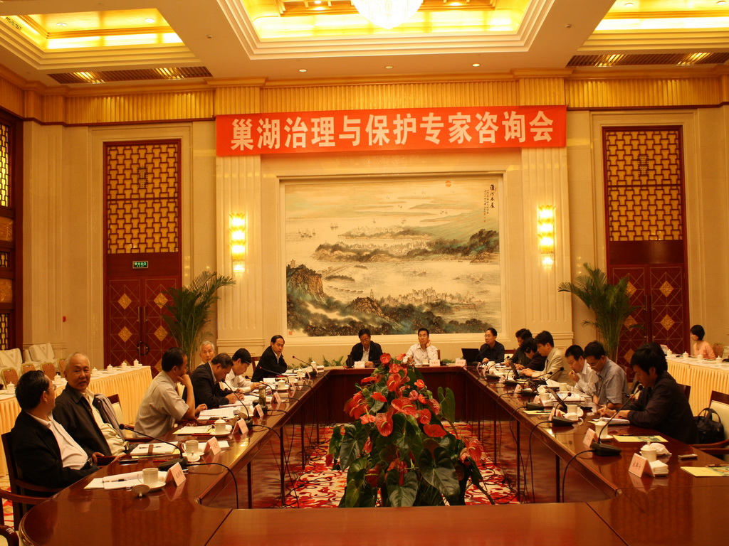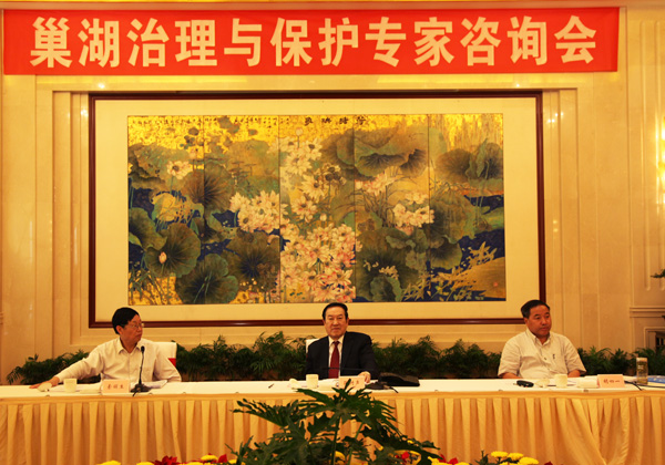 調(diào)研組一行先后實地考察了安慶市孔城河、菜子湖、樅陽閘,巢湖市巢湖閘、鳳凰頸閘、湖濱濕地,合肥市濱湖新區(qū)、塘西河、湖濱岸線、江淮分水嶺等現(xiàn)場,深入湖心考察水體狀況,詳細了解了巢湖水資源開發(fā)利用和水污染治理現(xiàn)狀,以及引江濟淮、引江濟巢線路規(guī)劃情況,并于28日下午與省政府、省人大和省發(fā)改委、水利廳、環(huán)保廳、引江濟淮前期工作領(lǐng)導(dǎo)小組辦公室等單位進行了座談。在29日舉行的技術(shù)咨詢會上,蔣樹聲、胡四一、索麗生與調(diào)研組專家深入探討巢湖治理與保護方略。